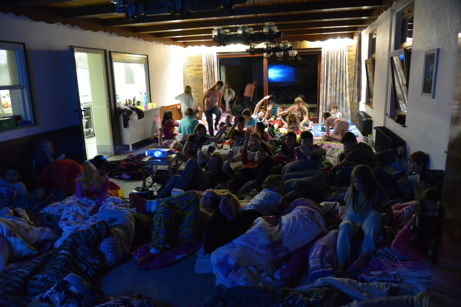 Als wir dann nach dem Rückweg wieder am Haus angekommen waren, wurde der Essraum ganz schnell zum Kino. Mit Kissen und Decke bewaffnet sahen wir dann, passend zum Thema, den Film “Der Schuh des Manitu“. Da das Herbstlager, vor allem für die jüngeren, anstrengend war schliefen einige dabei ein und wurden danach von den Leitern in ihre Betten gebracht.