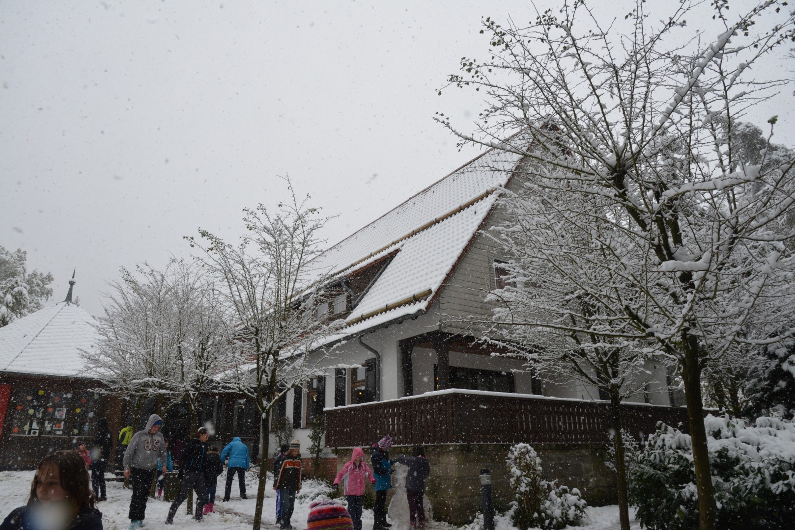 Am Morgen erwachten die meisten von uns von freudigen rufen: „Schnee! Schnee!“, riefen die Kinder. Und tatsächlich: Obwohl wir alle den Wetterbericht kannten, wollte am Vorabend so keiner richtig glauben, dass es schneien würde.