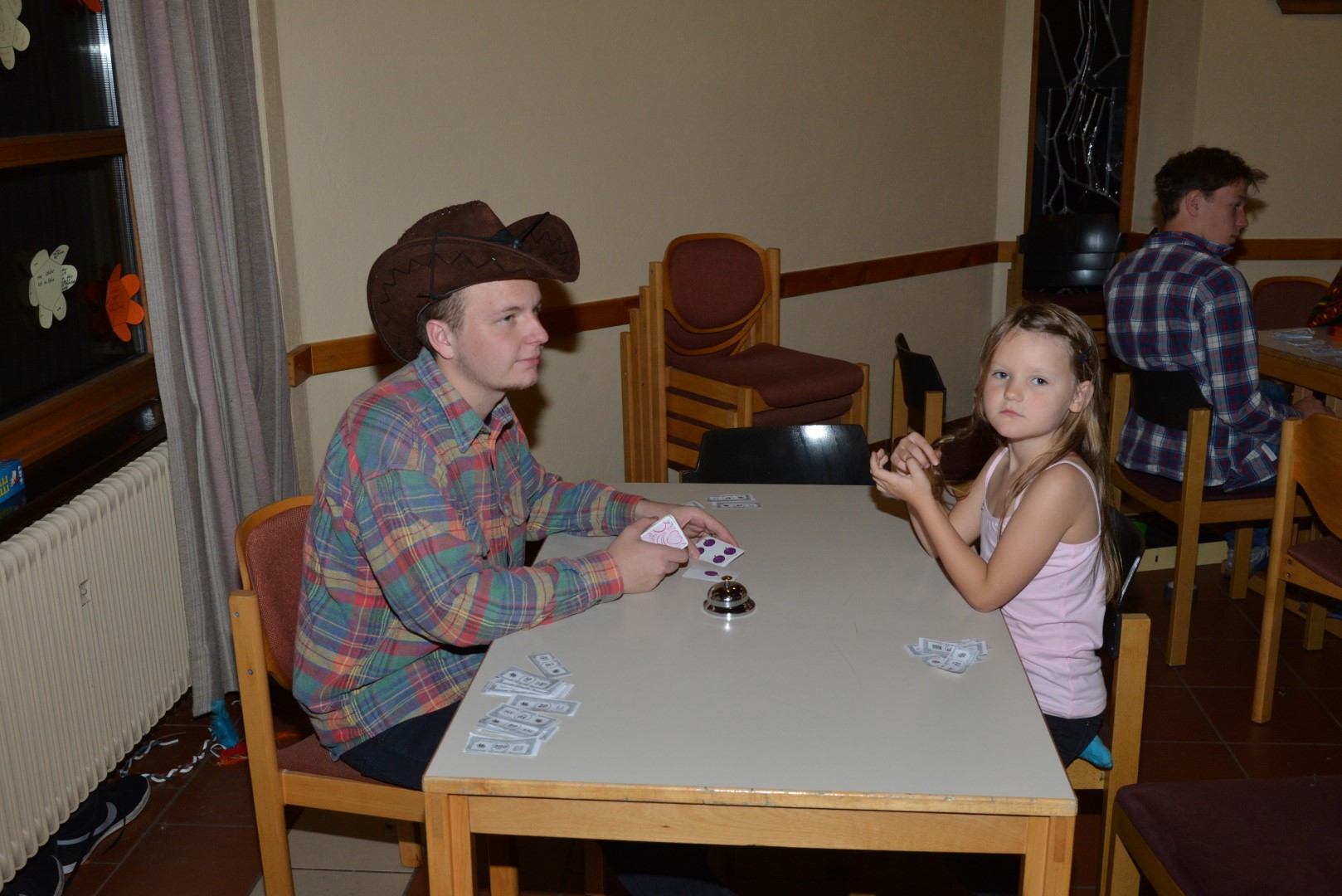 Abends gab es noch einen Wild-West Casinoabend. Die Leiter verkleideten sich und die Kinder machten sich schick. Jeder bekam einen Bündel KjG-Geldscheine in die Hand gedrückt und durfte darum spielen oder es für Milchshakes ausgeben. Als Spiele zur Auswahl gab es die üblichen Casinospiele wie Poker, Blackjack und Roulette, aber auch anderes, wie zum Beispiel Halli Galli.