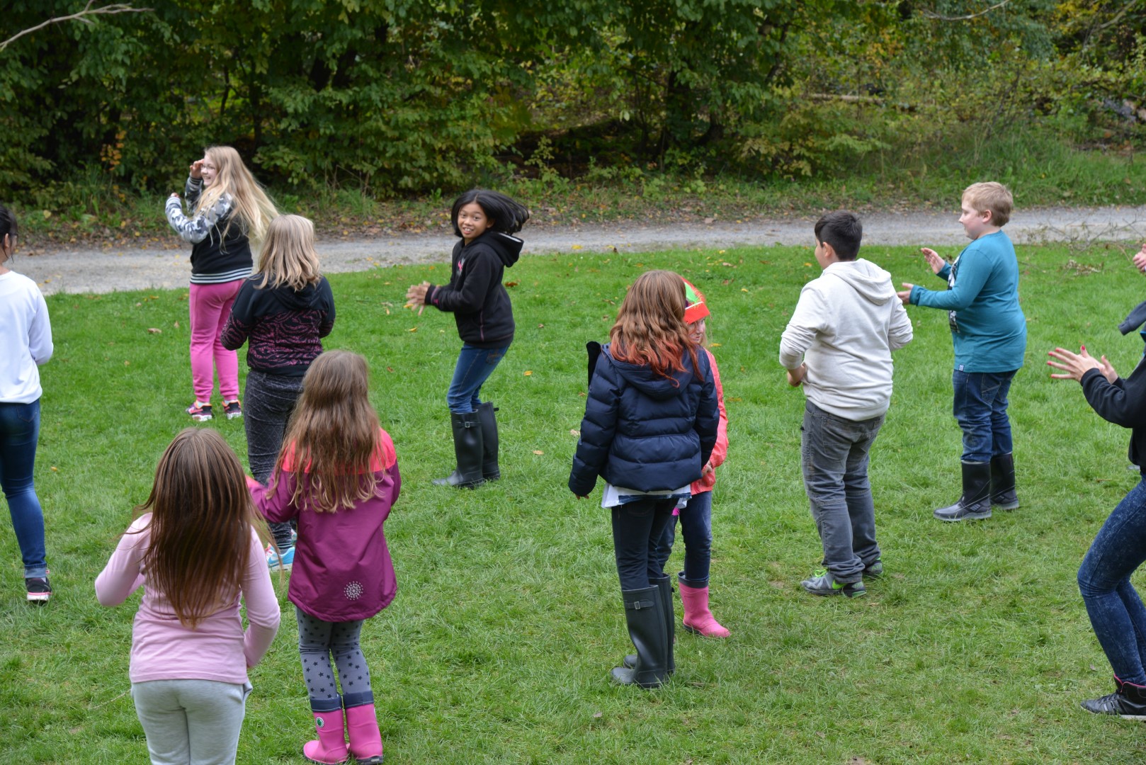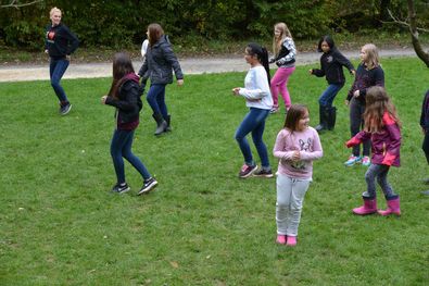 Nach den Diensten begann dann schließlich der Jahrmarkt. Wir zogen uns alle warm an und gingen in den Garten. Dort warteten den ganzen Tag über spannende und kreative Stationen auf uns, bei denen wir Armbänder, Hüte und Traumfänger bastelten.