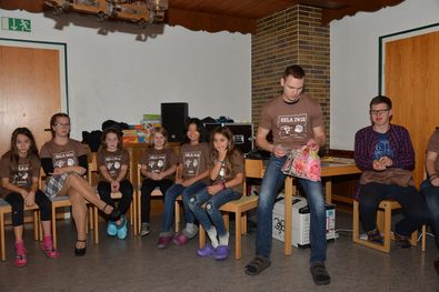 Das Abendprogramm selbst bestand aus einem Saloonabend, wo wir eine kleine Fete zum Ferienlagerbeginn feierten und tanzten. Beim abendlichen Impuls erhielten wir dann unsere schönen Lager-Shirts.