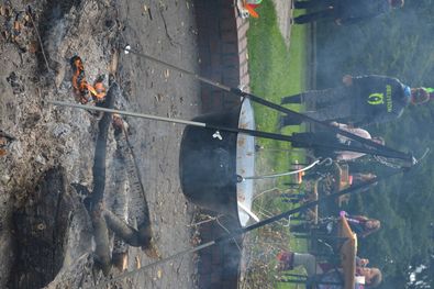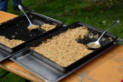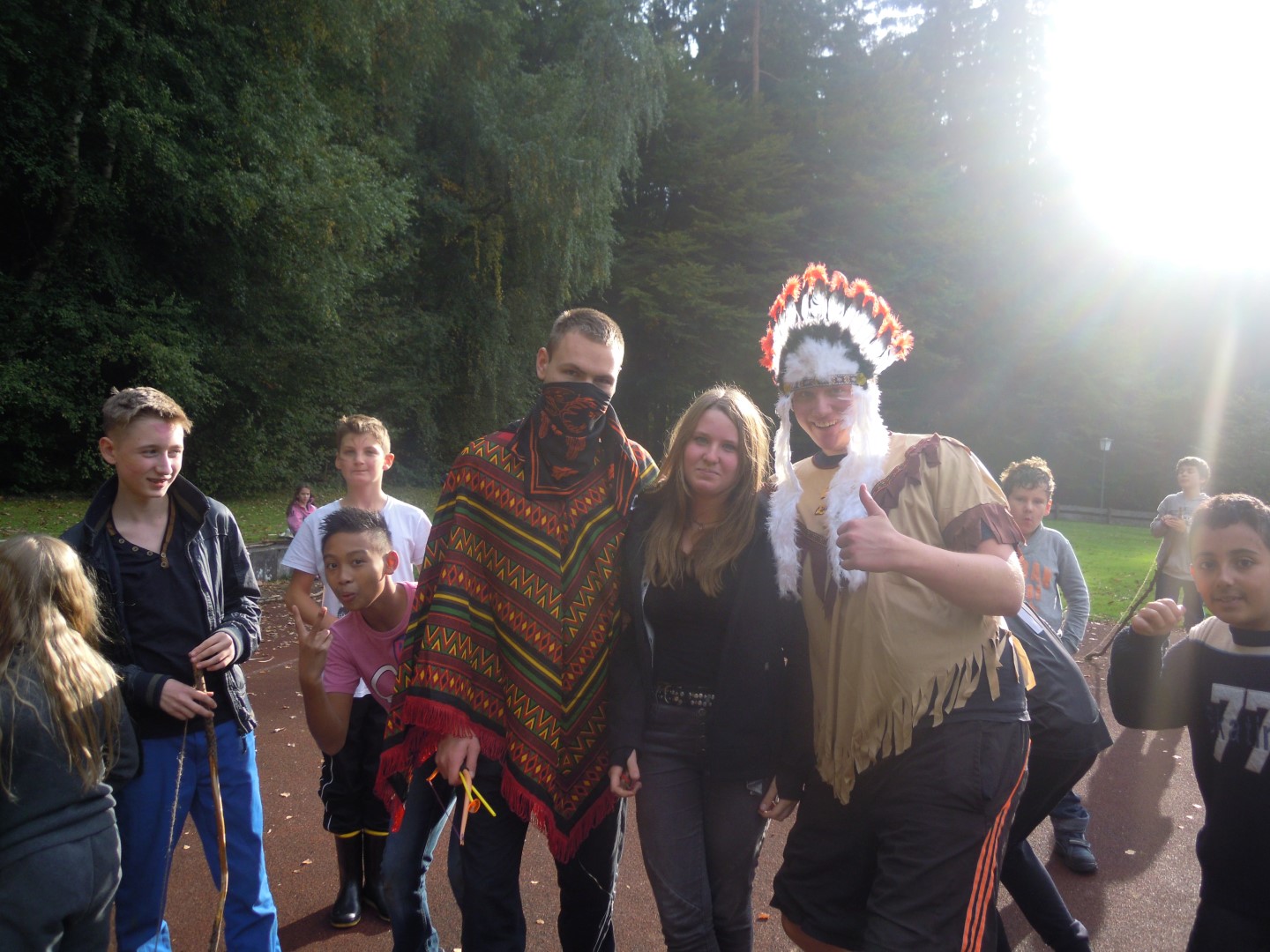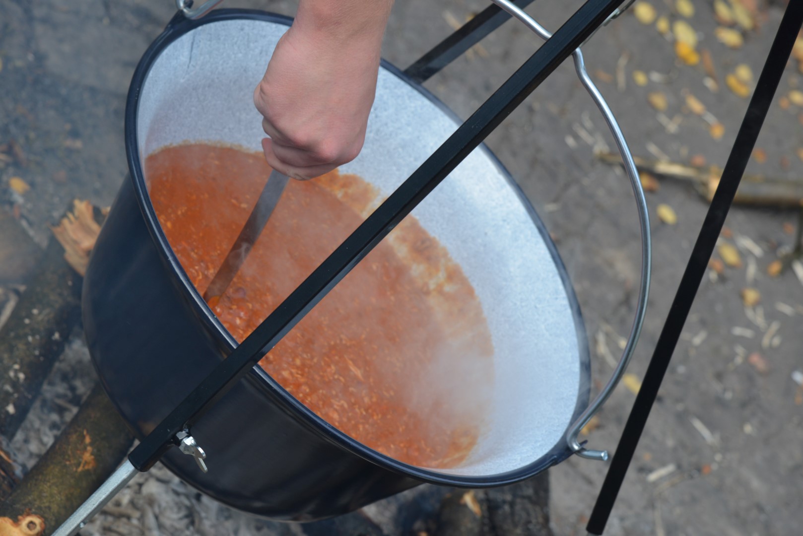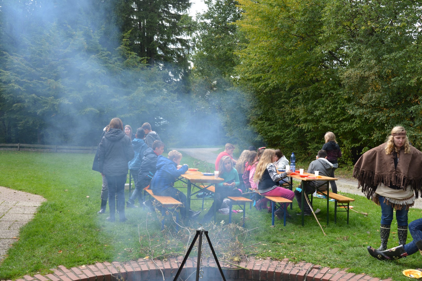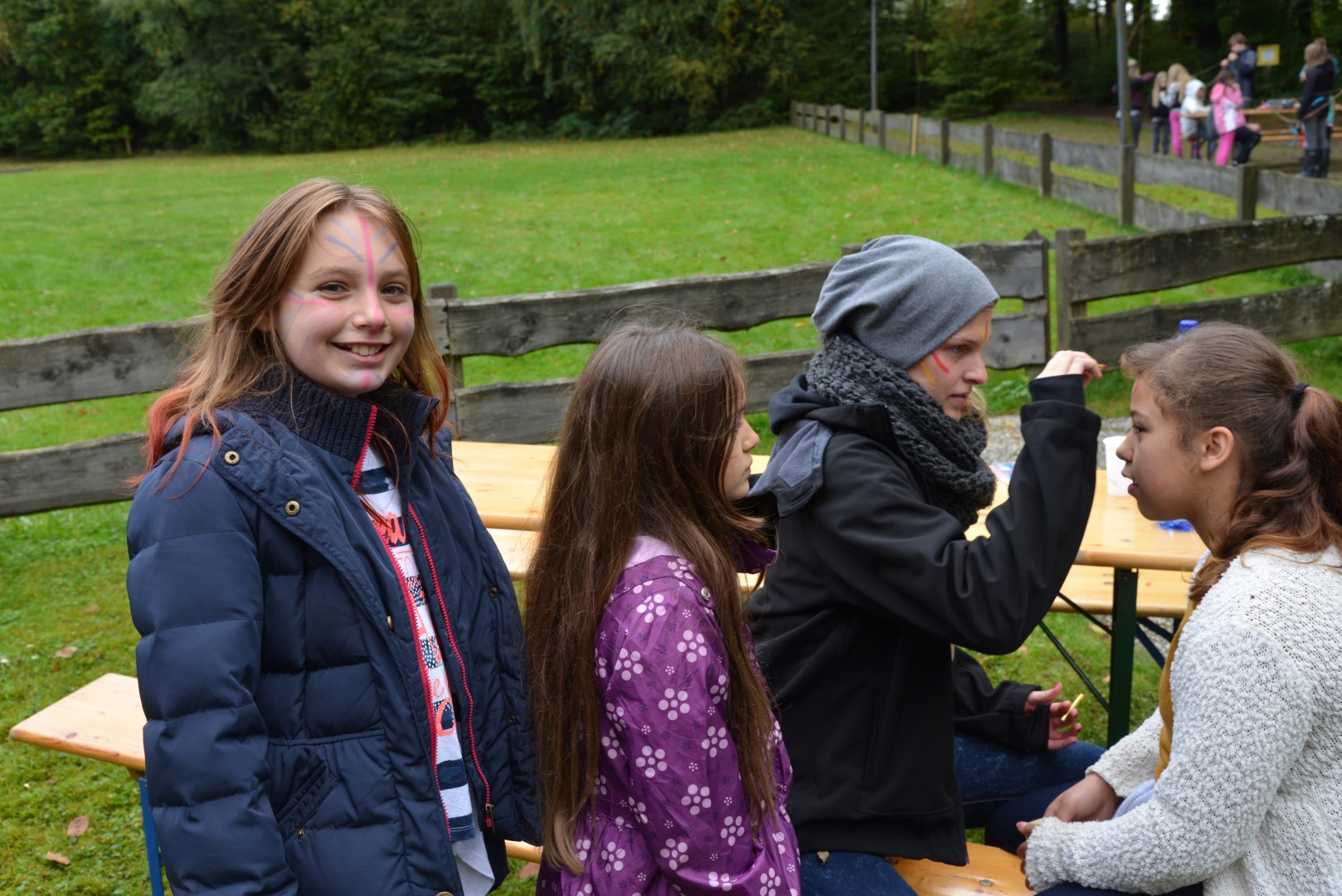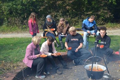 Außerdem fand das Mittagessen draußen statt. Es gab über einem Lagerfeuer gekochtes Chilli con Carne. Dieses mussten wir uns allerdings erst verdienen, indem wir uns gegenseitig Kriegsbemalung ins Gesicht schminkten.