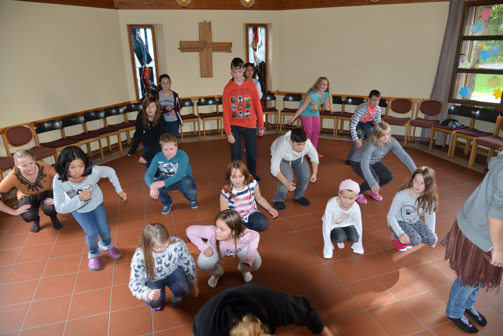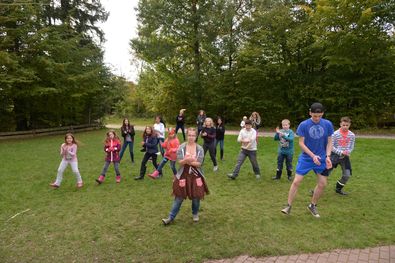 Nach dem Mittagessen konnten wir dann die restlichen Stationen abarbeiten. Im Anschluss daran testeten wir dann unsere selbstgebauten Pfeile und Bögen bei einem Bogenschiesswettbewerb, oder konnten alternativ einen Line Dance einstudieren, den die Kinder dann im Abendprogramm vortanzten.