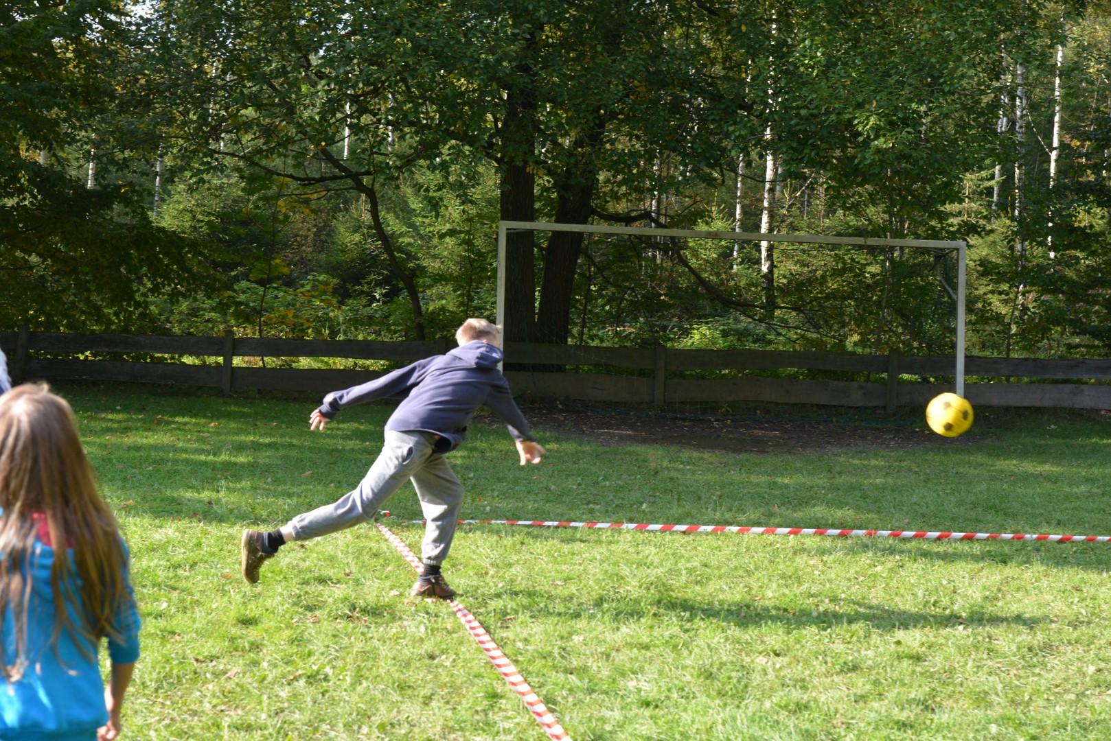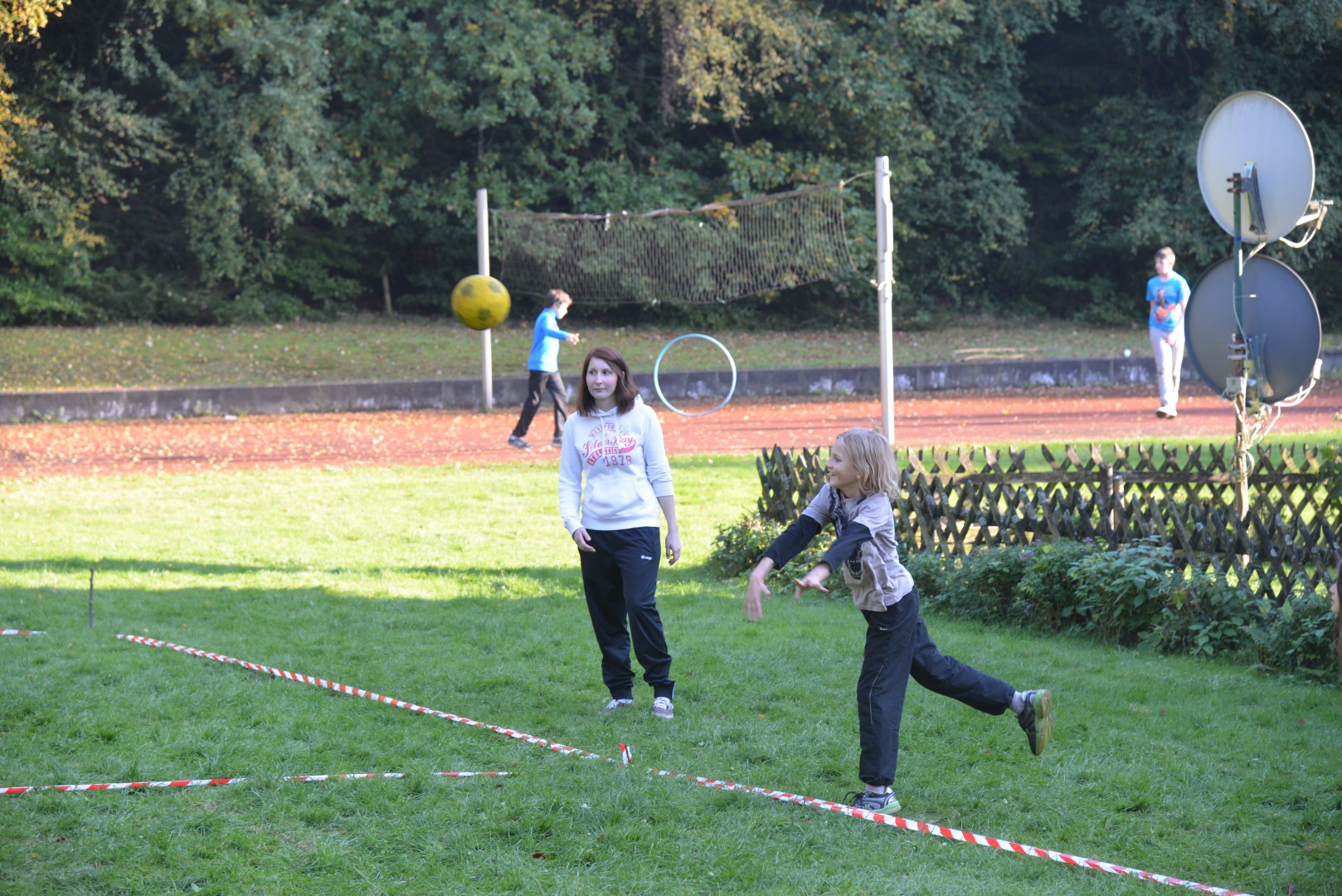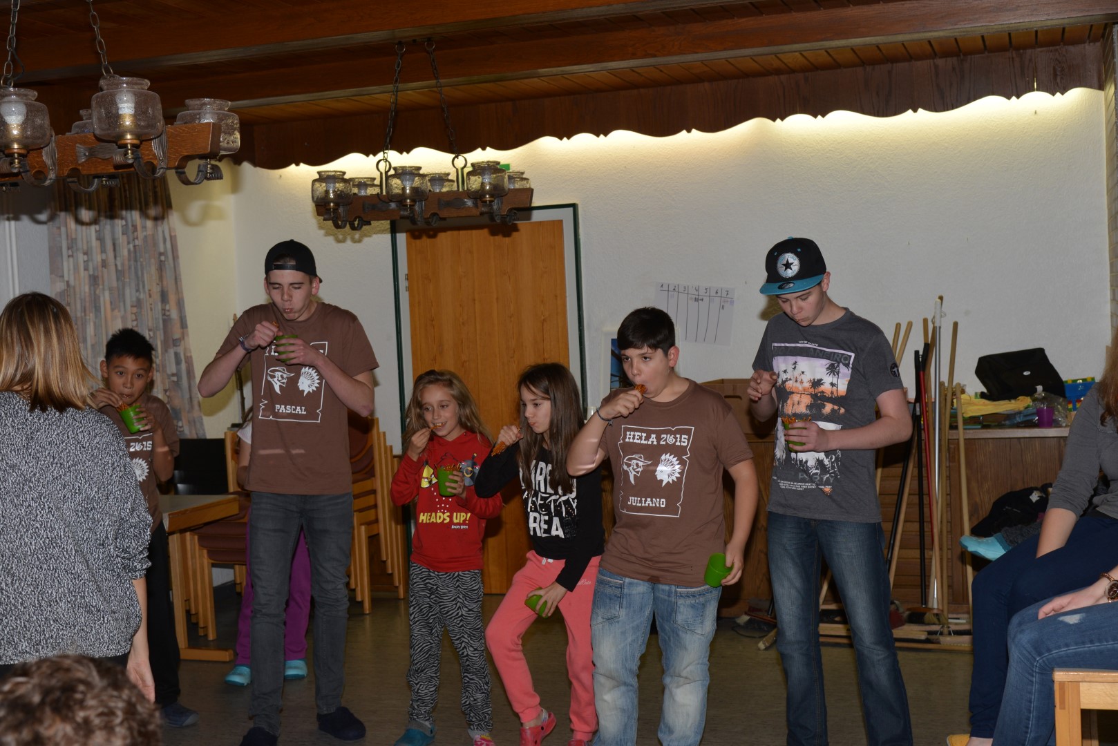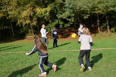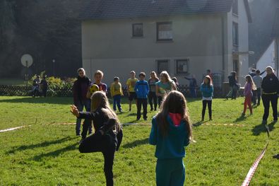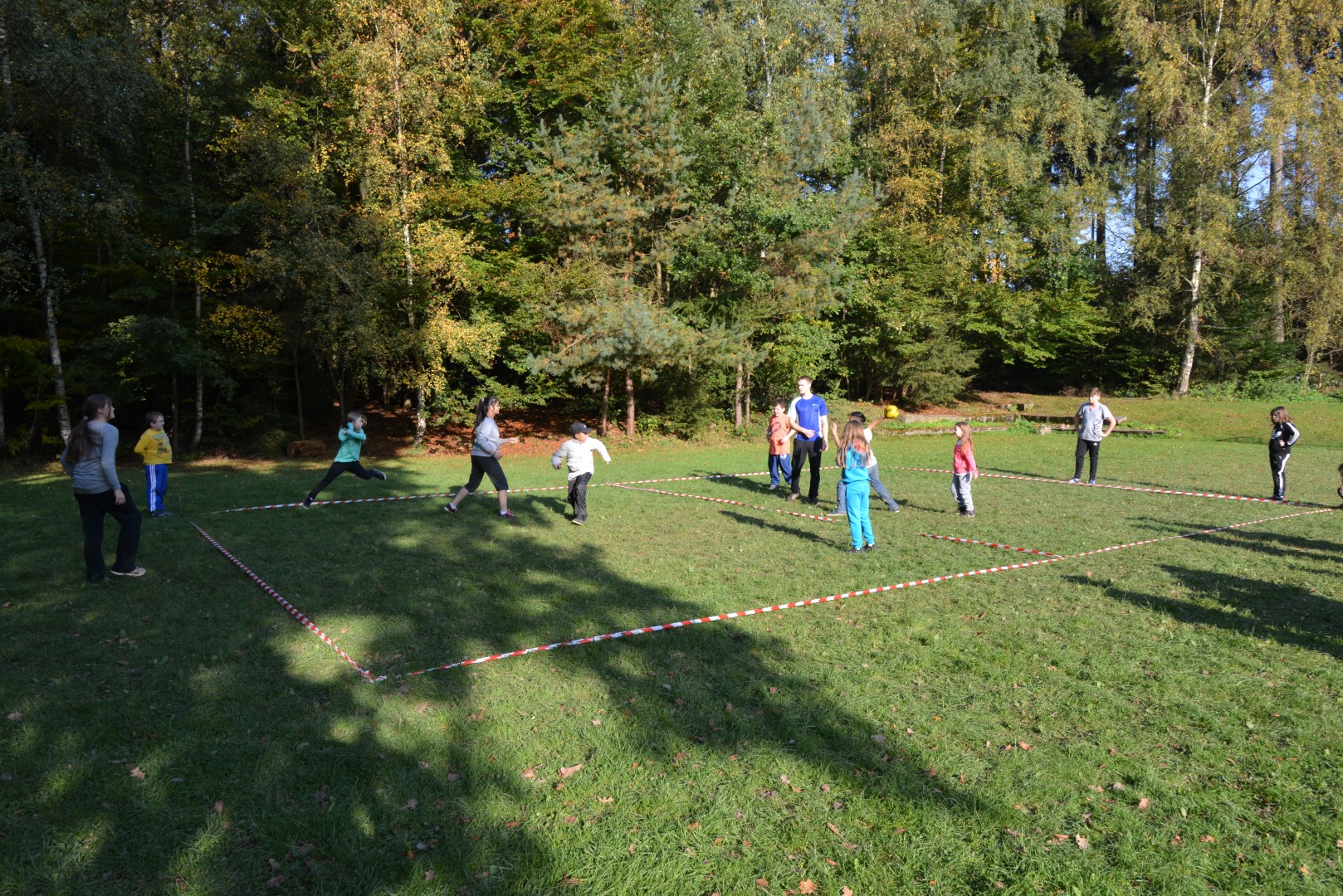 Nach dieser Einheit kam das Mittagessen. Es gab Nudeln mit Schinken und Tomatensoße und zum Nachtisch die allseits beliebte Schokokusscreme. Dann kam die Pause und die Kinder ruhten sich ein wenig aus. Zum Nachmittag haben wir einen Kampf der Völkerstämme inszeniert, dabei spielten die Gruppen Völkerball gegeneinander. Außerhalb der Wertung spielten wir dann noch eine große Runde Brennball (Kinder vs. Leiter).