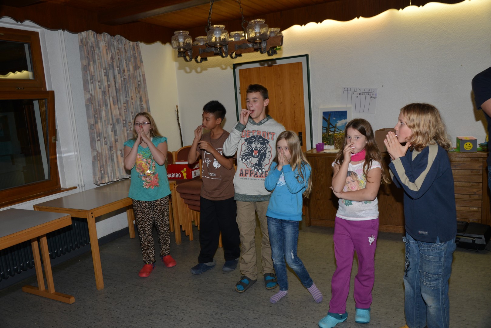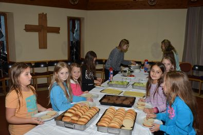 Zur Feier des Tages und aufgrund des nicht so üppigen Mittagessens, gab es ein Festmahl, dass aus Burger und Pommes bestand, die Kinder waren Pappsatt und gut bestärkt für den Abend. Die Kinder spielten in Einzeldisziplinen für ihre Gruppe an und zeigten wer die besten sind. Dies zeigten sie beim Spiel „Die perfekte Minute“. Nach dem anstrengenden Abend ließen wir ihn ruhig abklingen, zuallererst lösten wir das Schutzengelspiel auf, dann verteilten wir die Nuggets und zum Schluss gab es das Abendgebet.