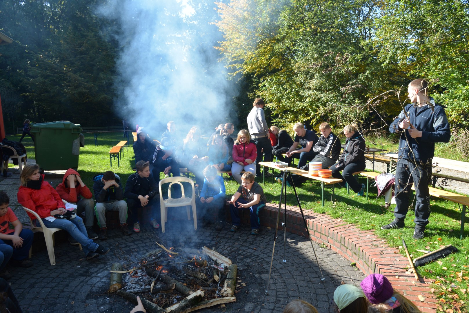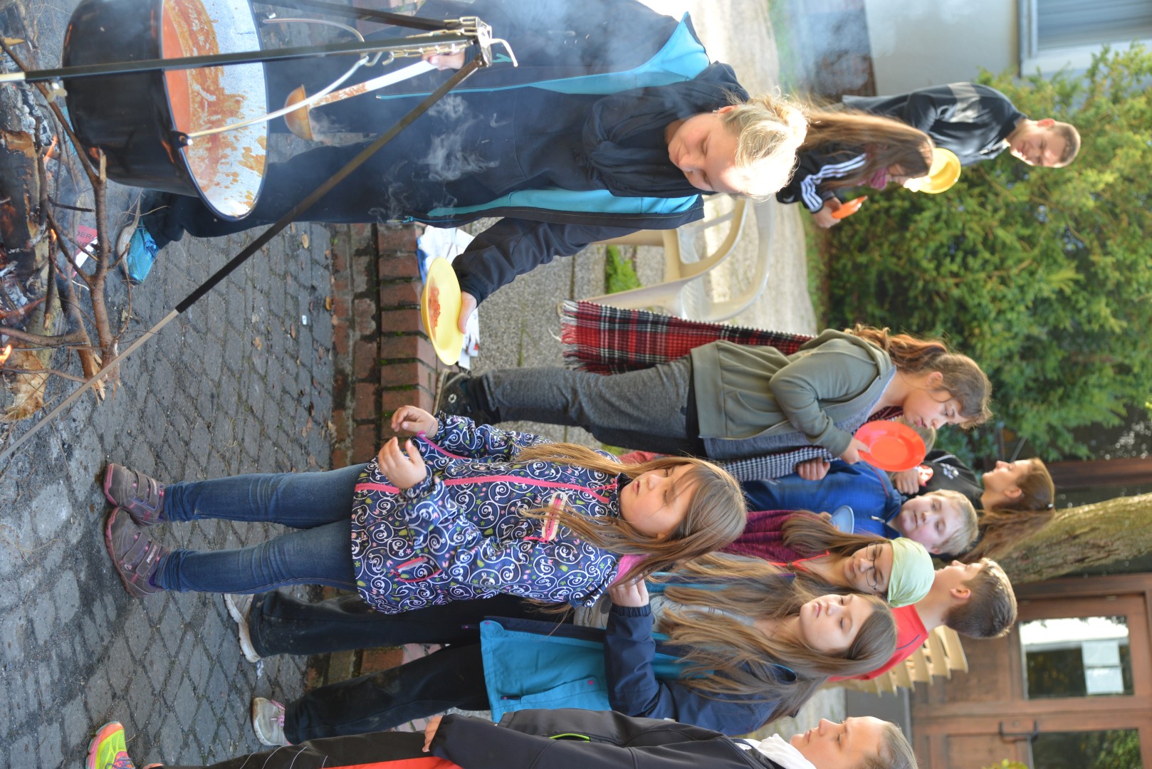 Um 12:30 Uhr gab es draußen Mittagessen, eine leckere Cabanossisuppe, die über dem Lagerfeuer zubereitet wurde.