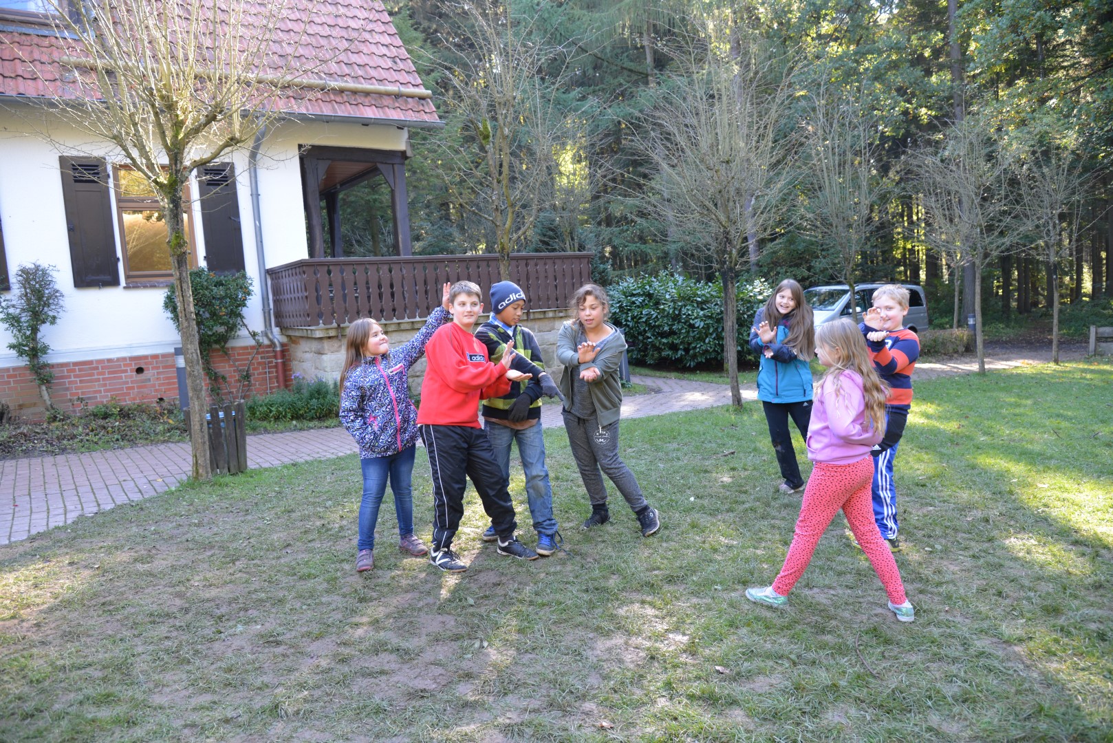 Danach haben wir rund um das Haus eine Schnitzeljagd gemacht.