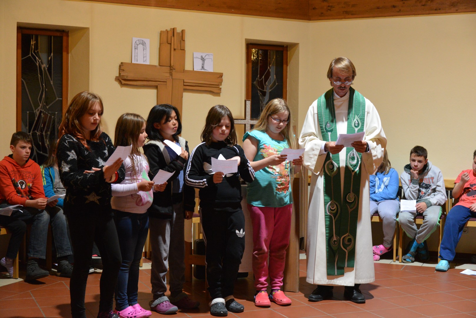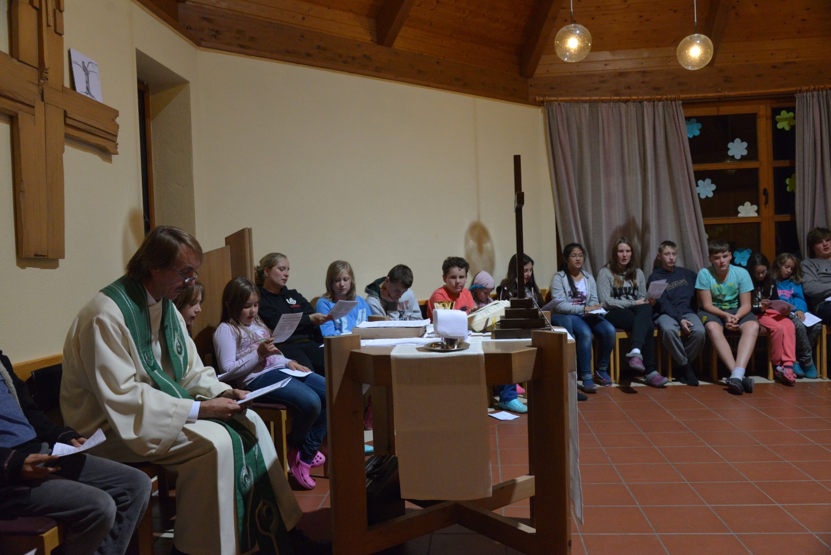 Da es heute Sonntag ist, feierten wir mit unserem Besuch (Pater Tobias) einen Gottesdienst. Nach dem Gottesdienst, sollten die Kinder in das Bett und die Großen durften sich noch die zweite Halbzeit des EM-Qualifikationsspiels Deutschland gegen Georgien ansehen.